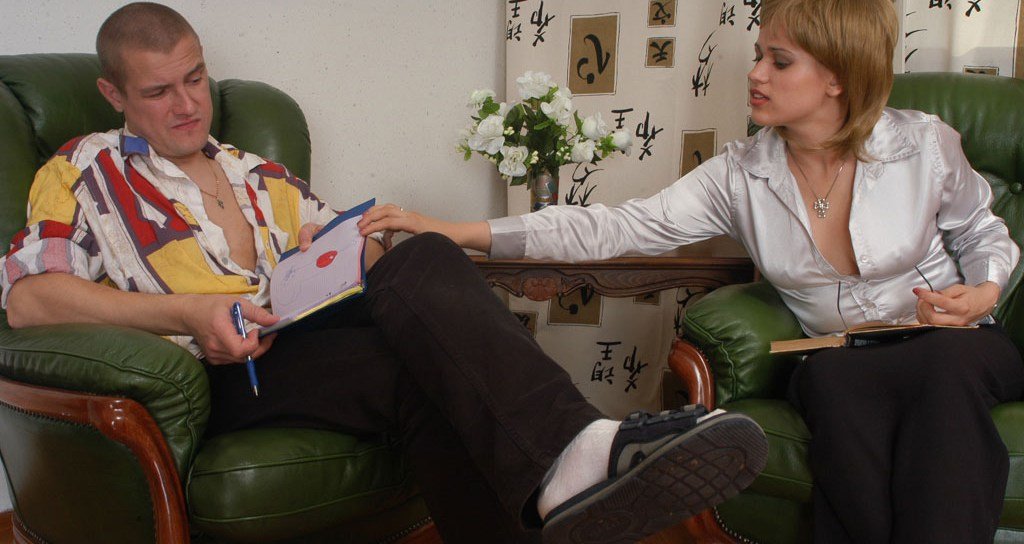 La pareja se sentó frente al sofá y se deslizaron sobre él juntos, llevando sus lenguas a bailar en medio de besos húmedos. Él le desabrochó los botones de su blusa violentamente, justo antes de cubrir sus hombros con sus besos ardientes. Ella contuvo el suspiro, cerrando los ojos mientras su cuerpo se estremecía de placer.